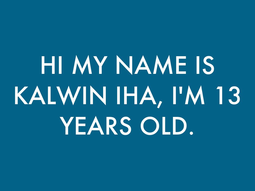 HI MY NAME IS KALWIN IHA, I'M 13 YEARS OLD.