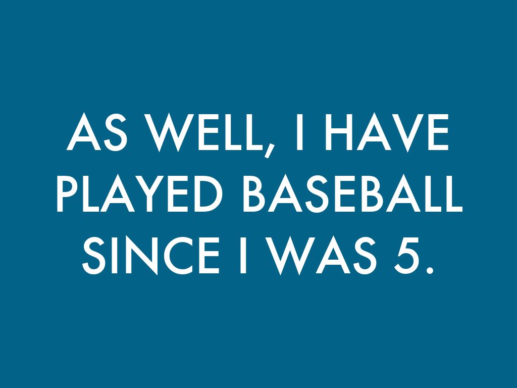 AS WELL, I HAVE PLAYED BASEBALL SINCE I WAS 5.