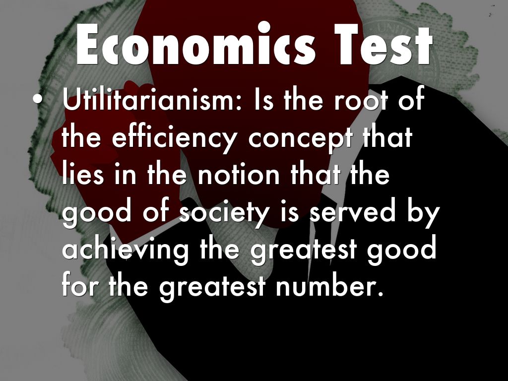 Utilitarianism: Is the root of the efficiency concept that lies in the notion that the good of society is served by achieving the greatest good for the greatest number.