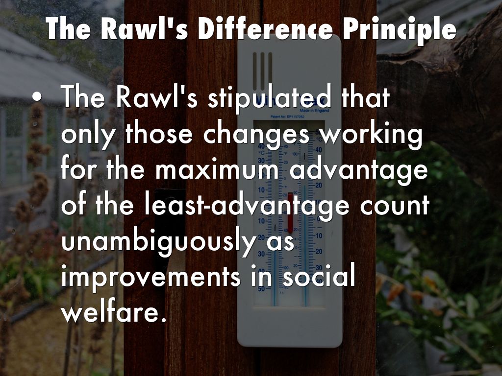 The Rawl's stipulated that only those changes working for the maximum advantage of the least-advantage count unambiguously as improvements in social welfare.
