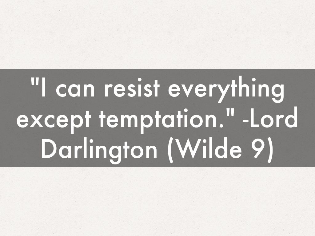 "I can resist everything except temptation." -Lord Darlington (Wilde 9)