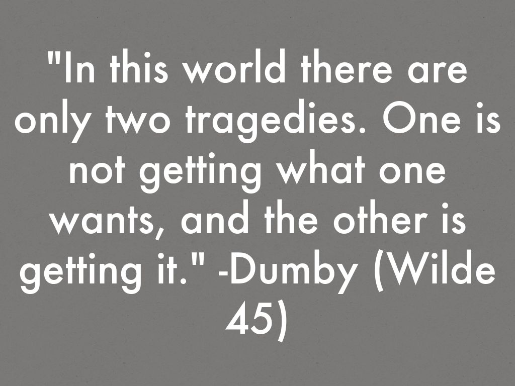 "In this world there are only two tragedies. One is not getting what one wants, and the other is getting it." -Dumby (Wilde 45)