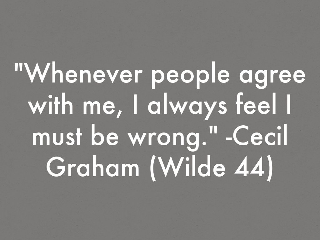 "Whenever people agree with me, I always feel I must be wrong." -Cecil Graham (Wilde 44)