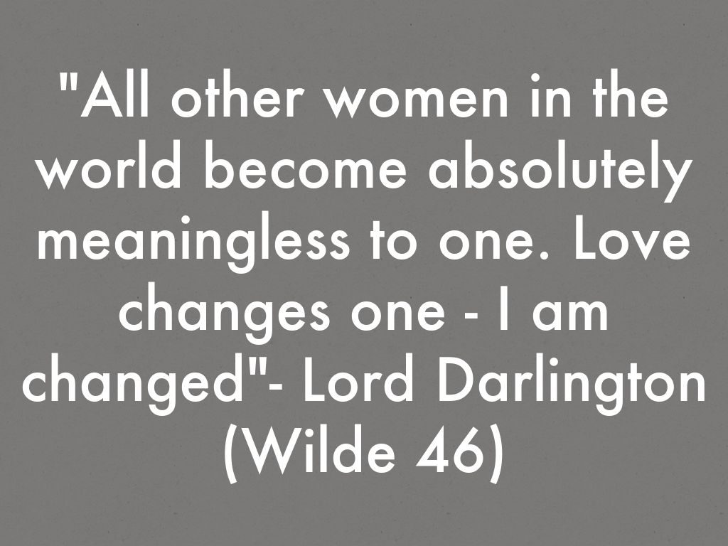 "All other women in the world become absolutely meaningless to one. Love changes one - I am changed"- Lord Darlington (Wilde 46)
