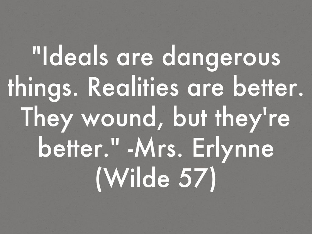 "Ideals are dangerous things. Realities are better. They wound, but they're better." -Mrs. Erlynne (Wilde 57)