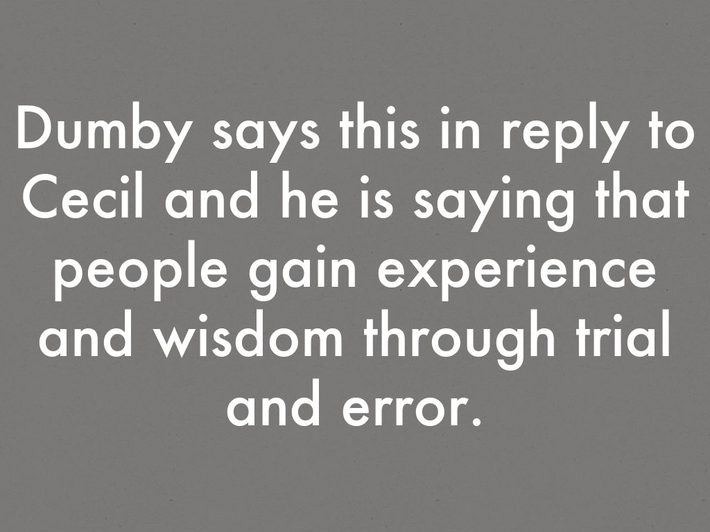 Dumby says this in reply to Cecil and he is saying that people gain experience and wisdom through trial and error.