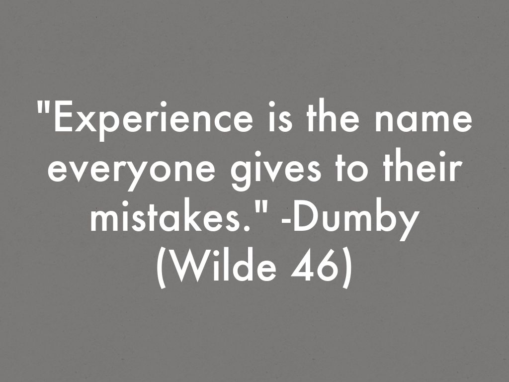 "Experience is the name everyone gives to their mistakes." -Dumby