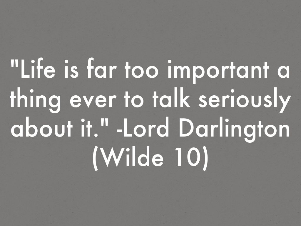"Life is far too important a thing ever to talk seriously about it." -Lord Darlington (Wilde 10)