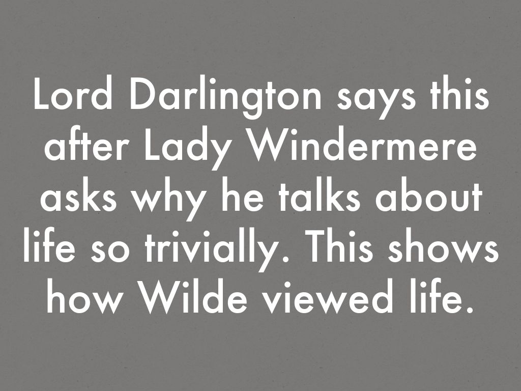 Lord Darlington says this after Lady Windermere asks why he talks about life so trivially. This shows how Wilde viewed life.