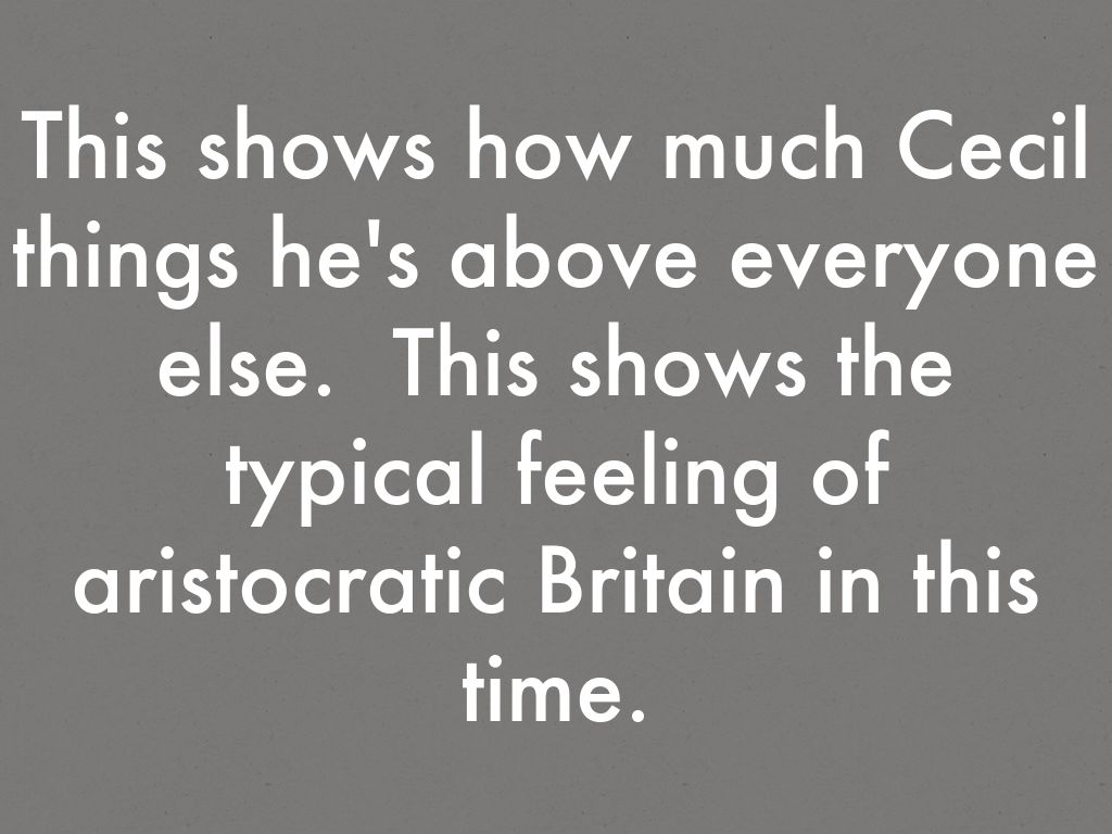This shows how much Cecil things he's above everyone else. This shows the typical feeling of aristocratic Britain in this time.