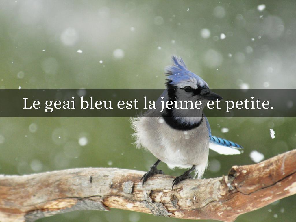 Le geai bleu est la jeune et petite.