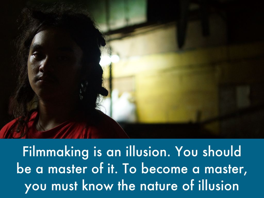 Filmmaking is an illusion. You should be a master of it. To become a master, you must know the nature of illusion