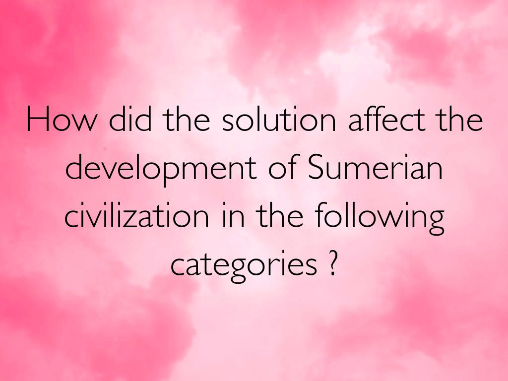 How did the solution affect the development of Sumerian civilization in the following categories ?