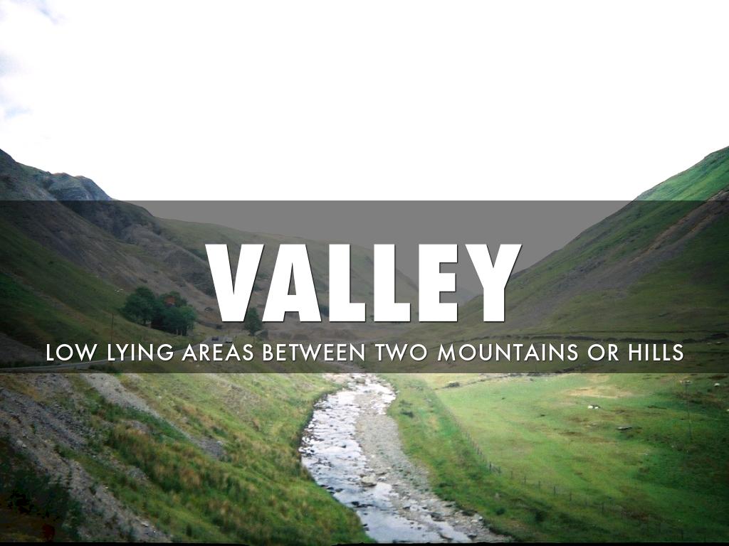 LOW LYING AREAS BETWEEN TWO MOUNTAINS OR HILLS