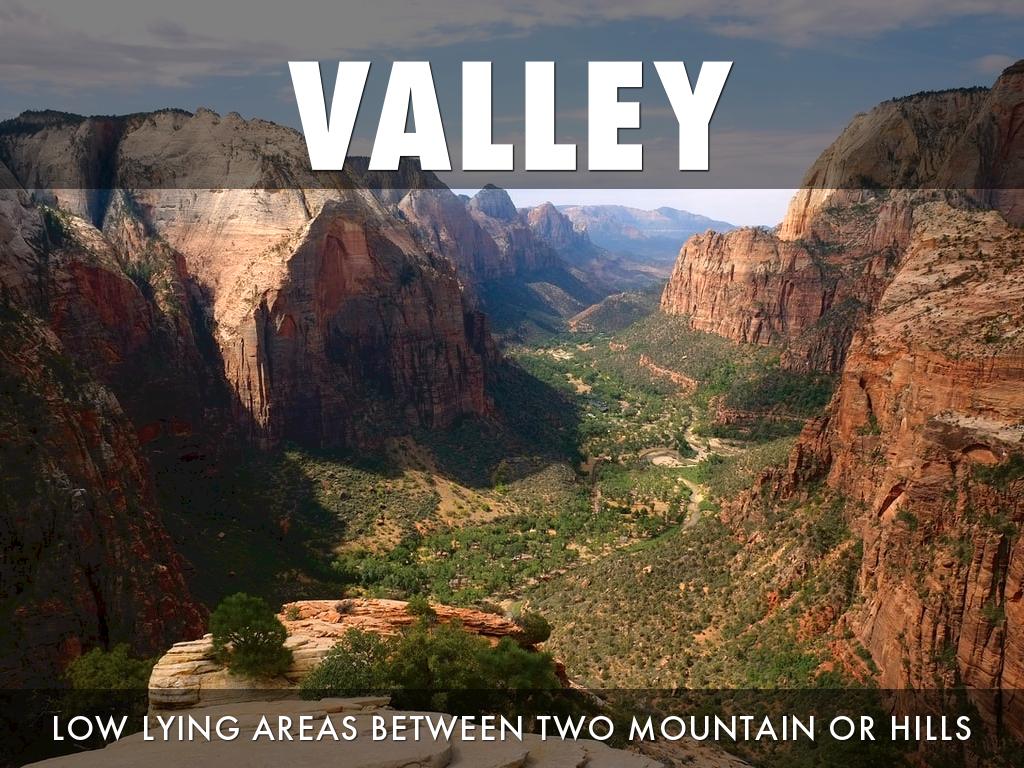 LOW LYING AREAS BETWEEN TWO MOUNTAIN OR HILLS