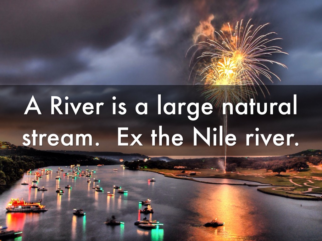 A River is a large natural stream. Ex the Nile river.