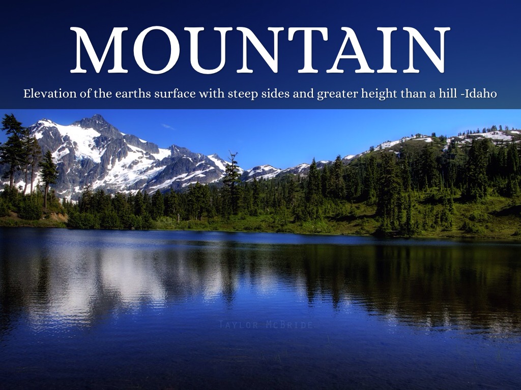 Elevation of the earths surface with steep sides and greater height than a hill -Idaho