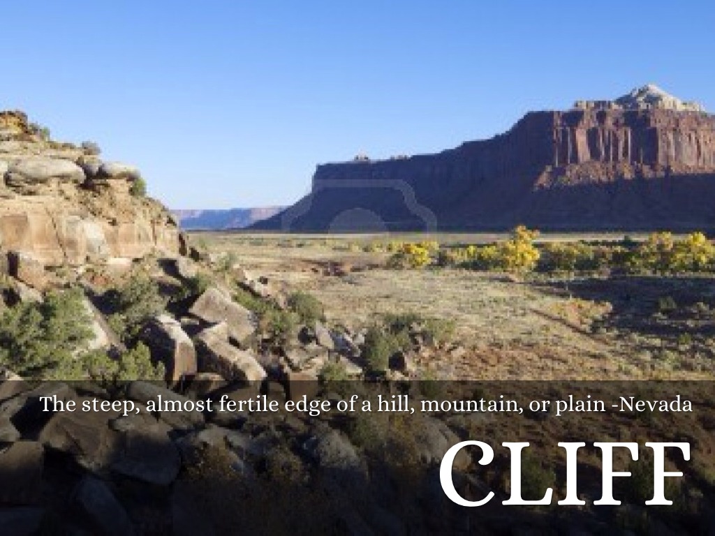 The steep, almost fertile edge of a hill, mountain, or plain -Nevada