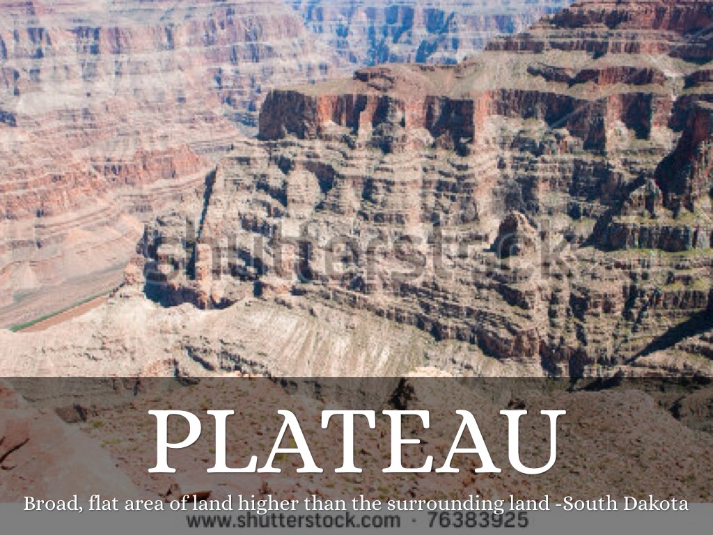 Broad, flat area of land higher than the surrounding land -South Dakota