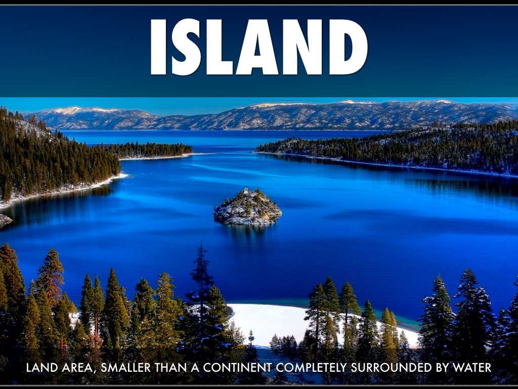 LAND AREA, SMALLER THAN A CONTINENT COMPLETELY SURROUNDED BY WATER