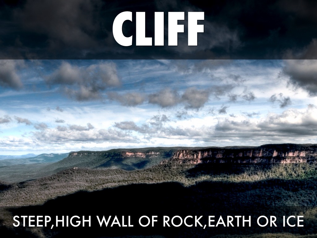 STEEP,HIGH WALL OF ROCK,EARTH OR ICE