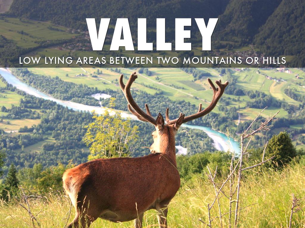 LOW LYING AREAS BETWEEN TWO MOUNTAINS OR HILLS