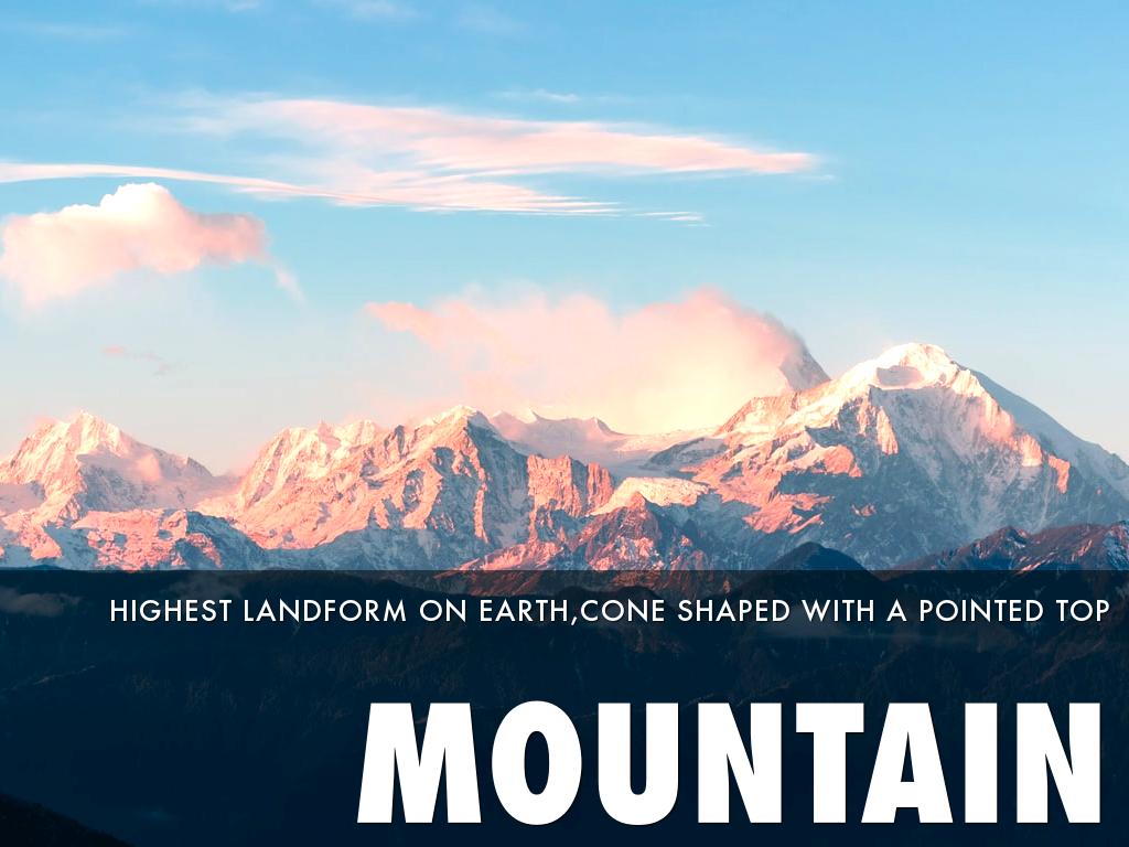 HIGHEST LANDFORM ON EARTH,CONE SHAPED WITH A POINTED TOP