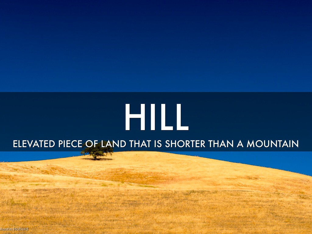 ELEVATED PIECE OF LAND THAT IS SHORTER THAN A MOUNTAIN