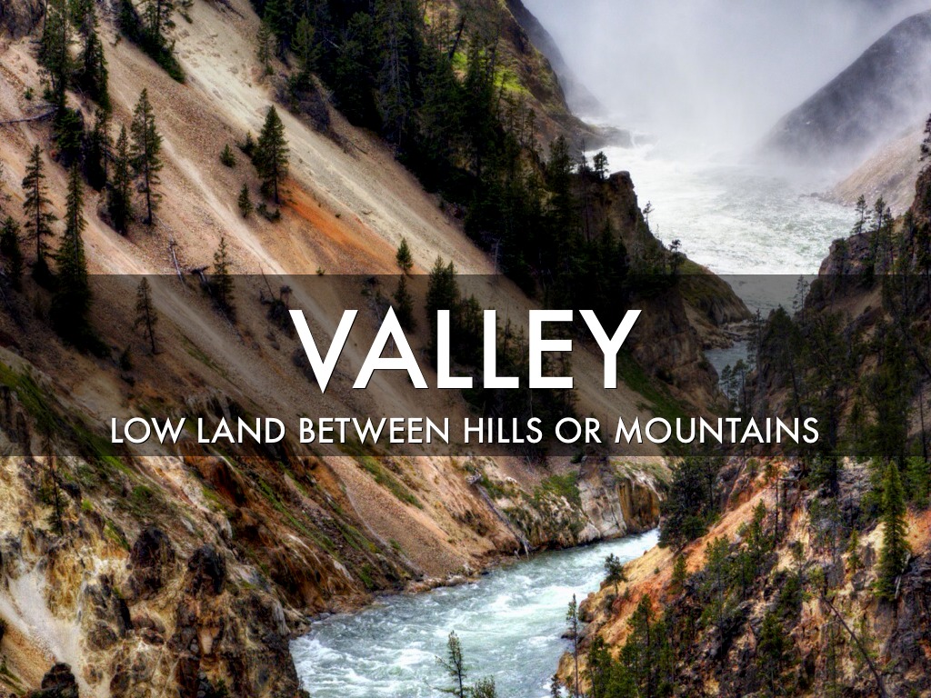 LOW LAND BETWEEN HILLS OR MOUNTAINS
