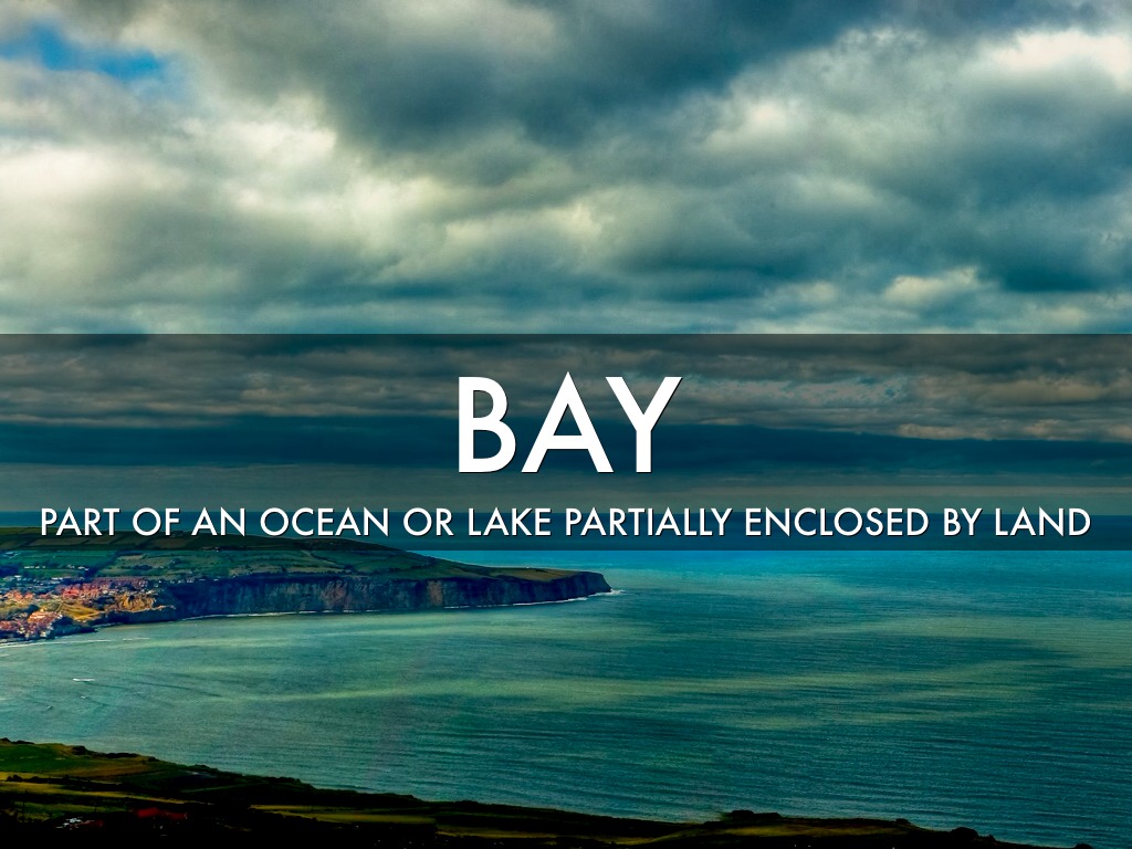 PART OF AN OCEAN OR LAKE PARTIALLY ENCLOSED BY LAND