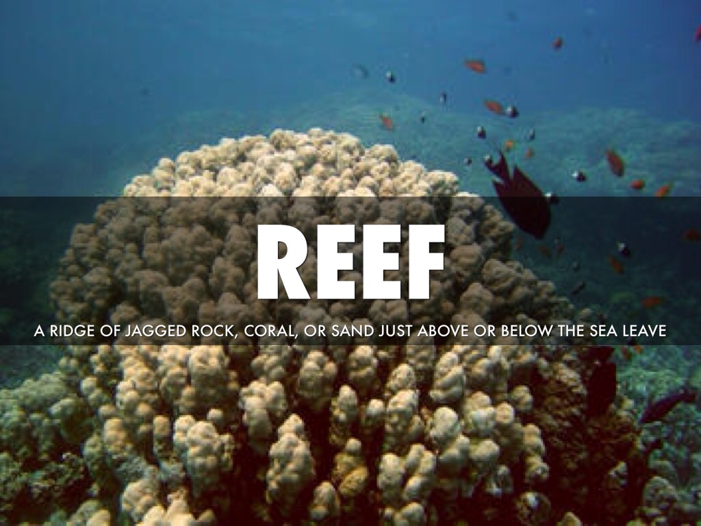 a ridge of jagged rock, coral, or sand just above or below the sea leave