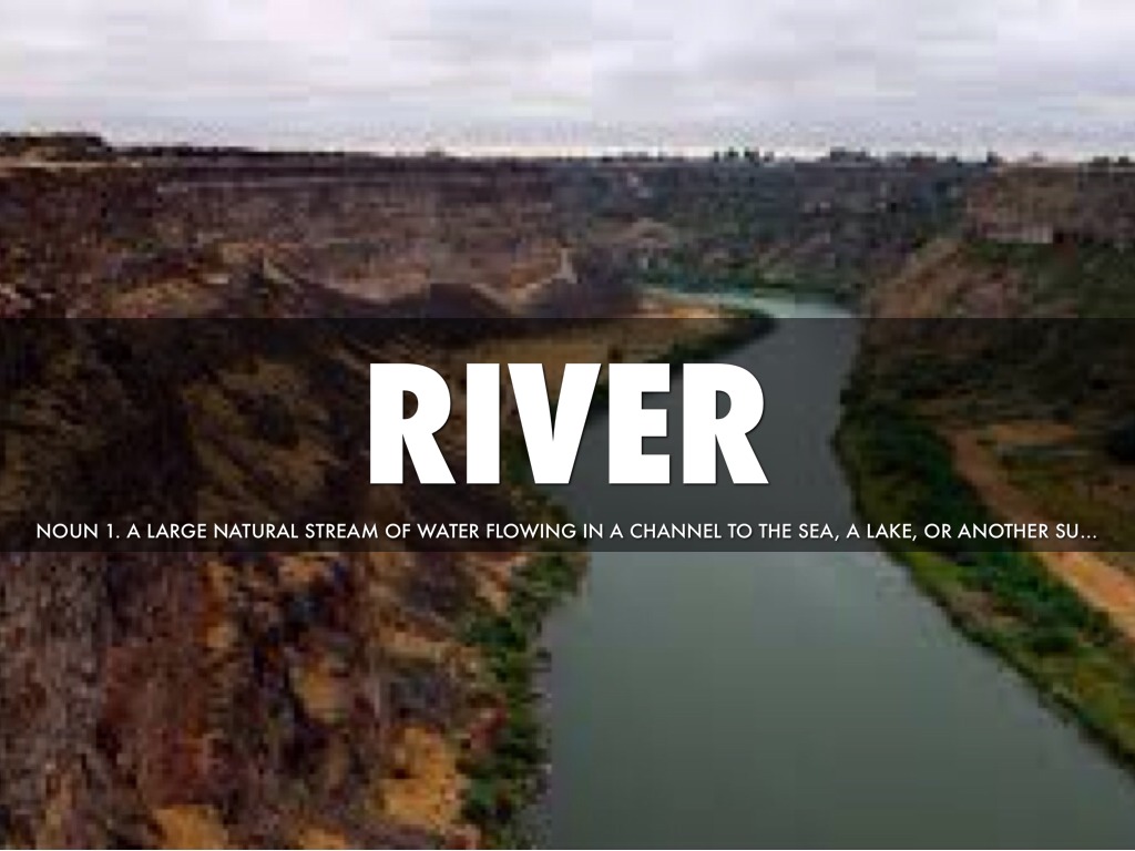 NOUN 1. A LARGE NATURAL STREAM OF WATER FLOWING IN A CHANNEL TO THE SEA, A LAKE, OR ANOTHER SUCH STREAM.