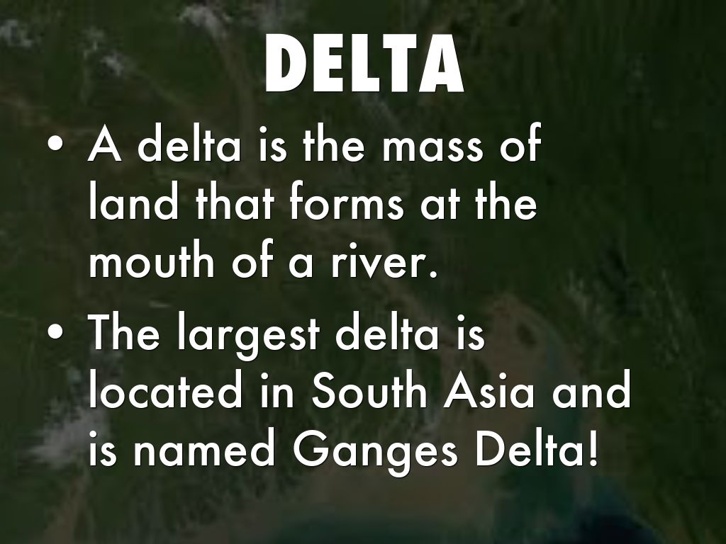 • A delta is the mass of land that forms at the mouth of a river.