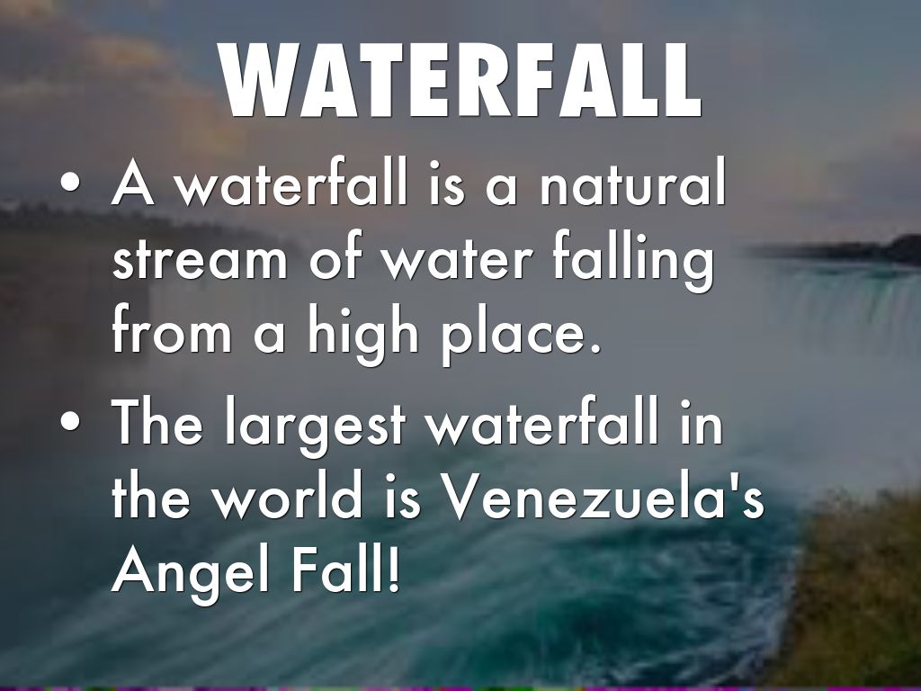• A waterfall is a natural stream of water falling from a high place.