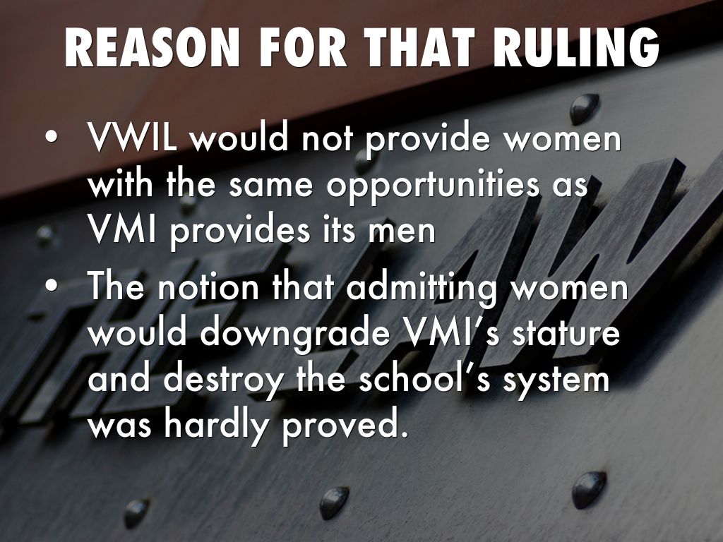 The notion that admitting women would downgrade VMI’s stature and destroy the school’s system was hardly proved.