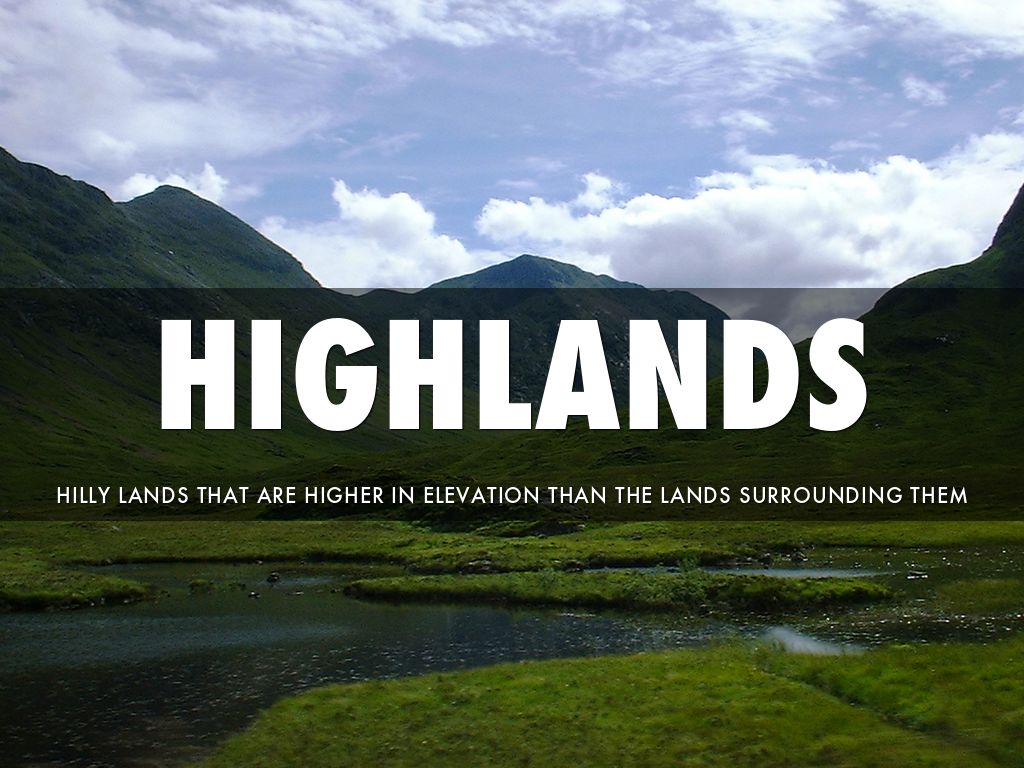HILLY LANDS THAT ARE HIGHER IN ELEVATION THAN THE LANDS SURROUNDING THEM