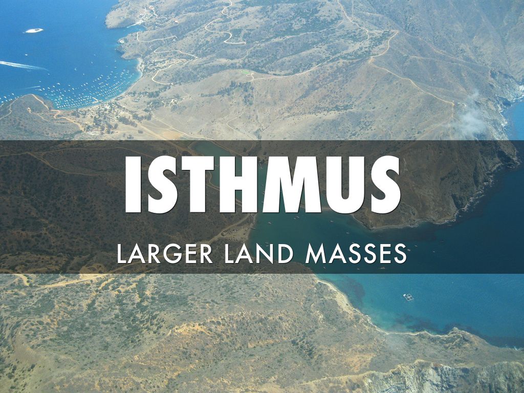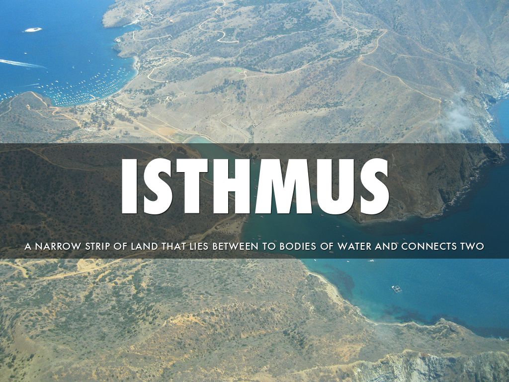 A NARROW STRIP OF LAND THAT LIES BETWEEN TO BODIES OF WATER AND CONNECTS TWO