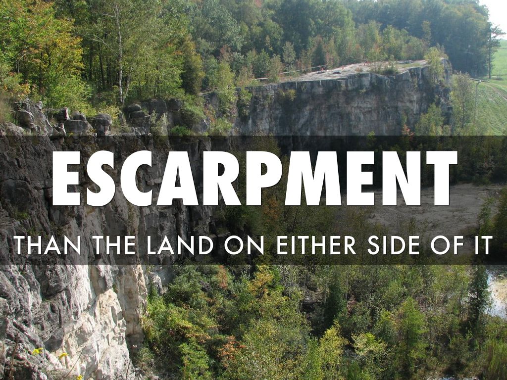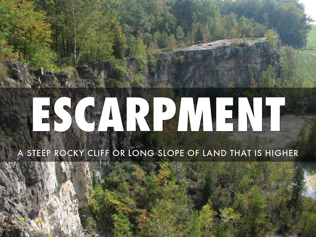 A STEEP ROCKY CLIFF OR LONG SLOPE OF LAND THAT IS HIGHER