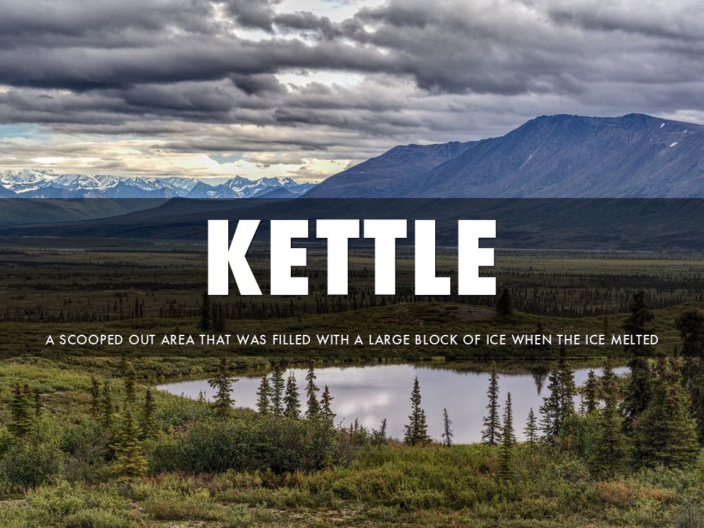 IT LEFT A LOW AREA IF THE AREA FILLED WITH WATER IT BECAME A KETTLE LAKE