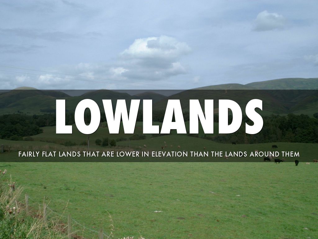 FAIRLY FLAT LANDS THAT ARE LOWER IN ELEVATION THAN THE LANDS AROUND THEM