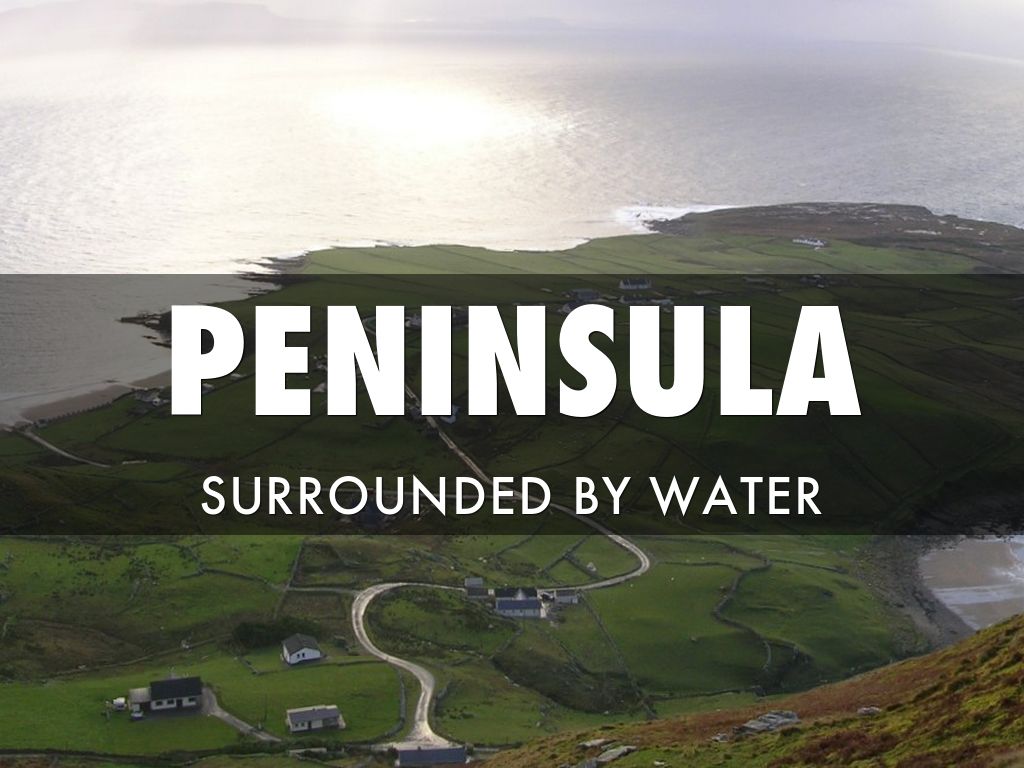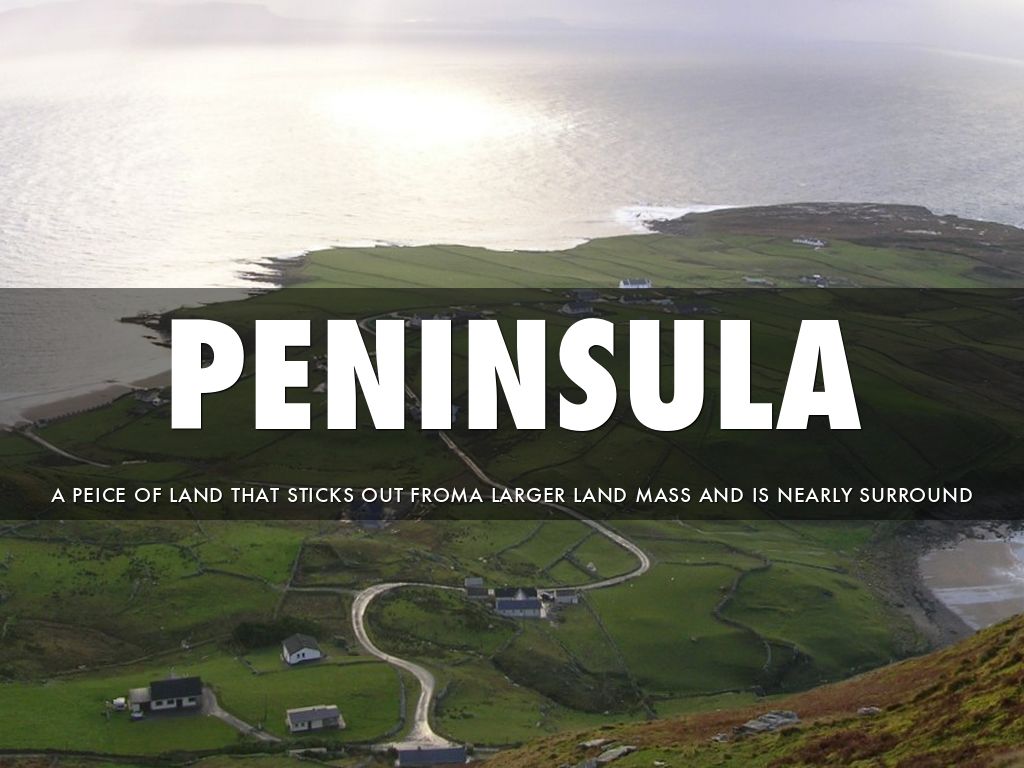 A PEICE OF LAND THAT STICKS OUT FROMA LARGER LAND MASS AND IS NEARLY SURROUND