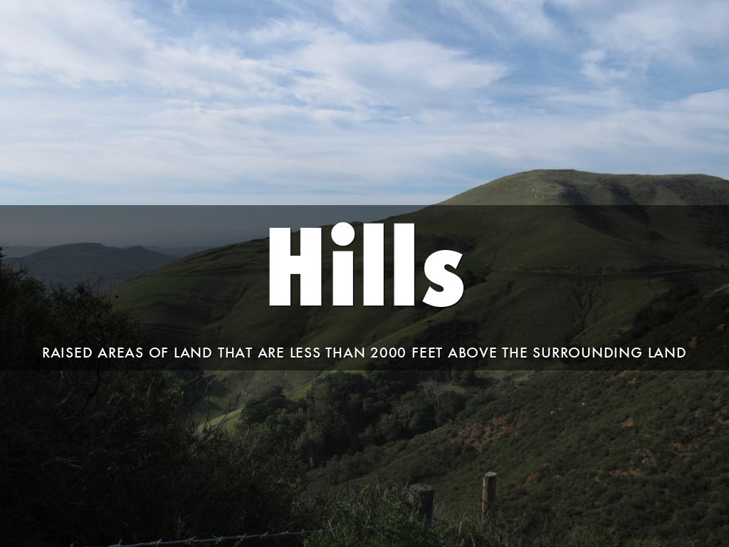 RAISED AREAS OF LAND THAT ARE LESS THAN 2000 FEET ABOVE THE SURROUNDING LAND