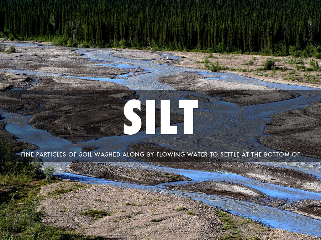 FINE PARTICLES OF SOIL WASHED ALONG BY FLOWING WATER TO SETTLE AT THE BOTTOM OF