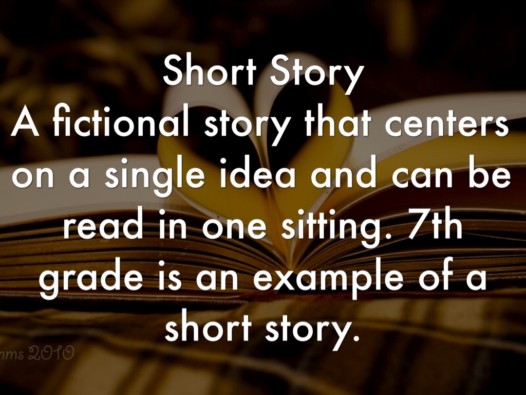 A fictional story that centers on a single idea and can be read in one sitting. 7th grade is an example of a short story.