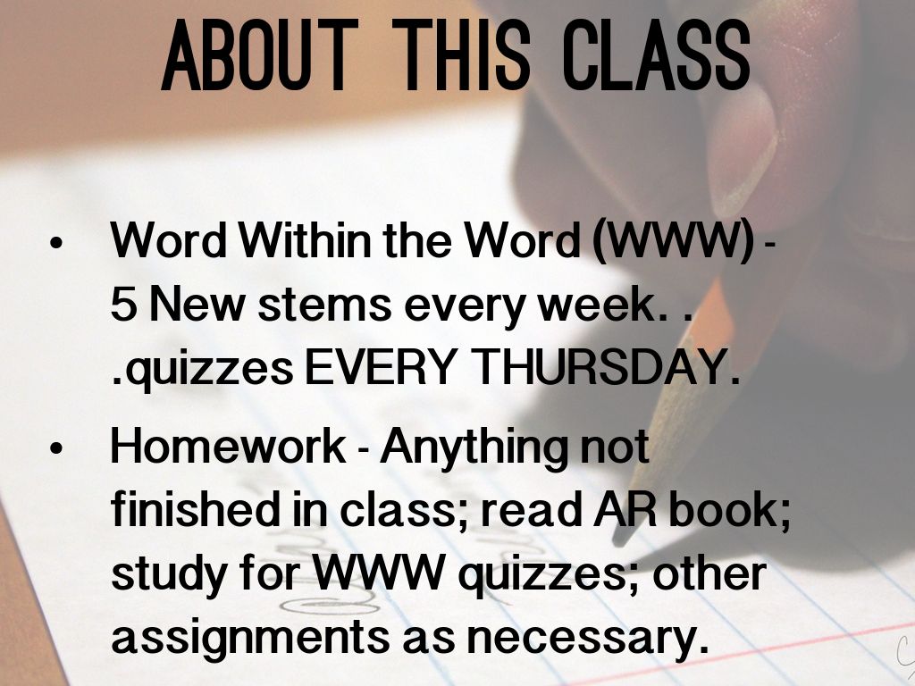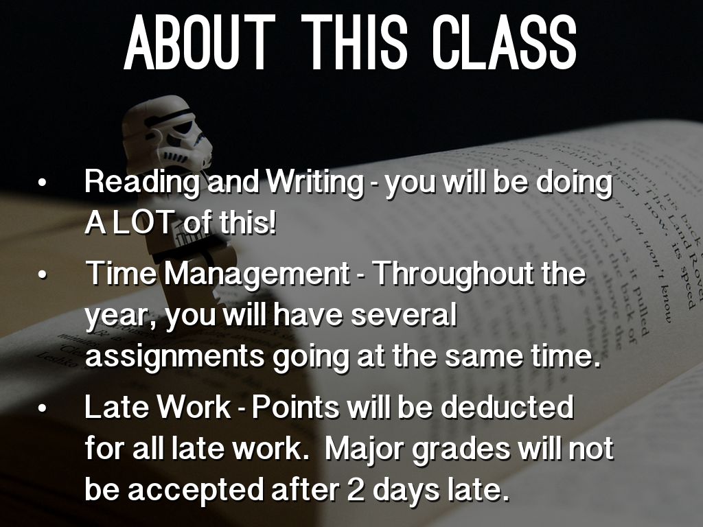 Technology Agreement – Phones and personal devices can be used during class for assignments and class related tasks. There will be loss of tech privileges if tech is used for activities not directly related to the assignments (texting, games, pictures, etc.)