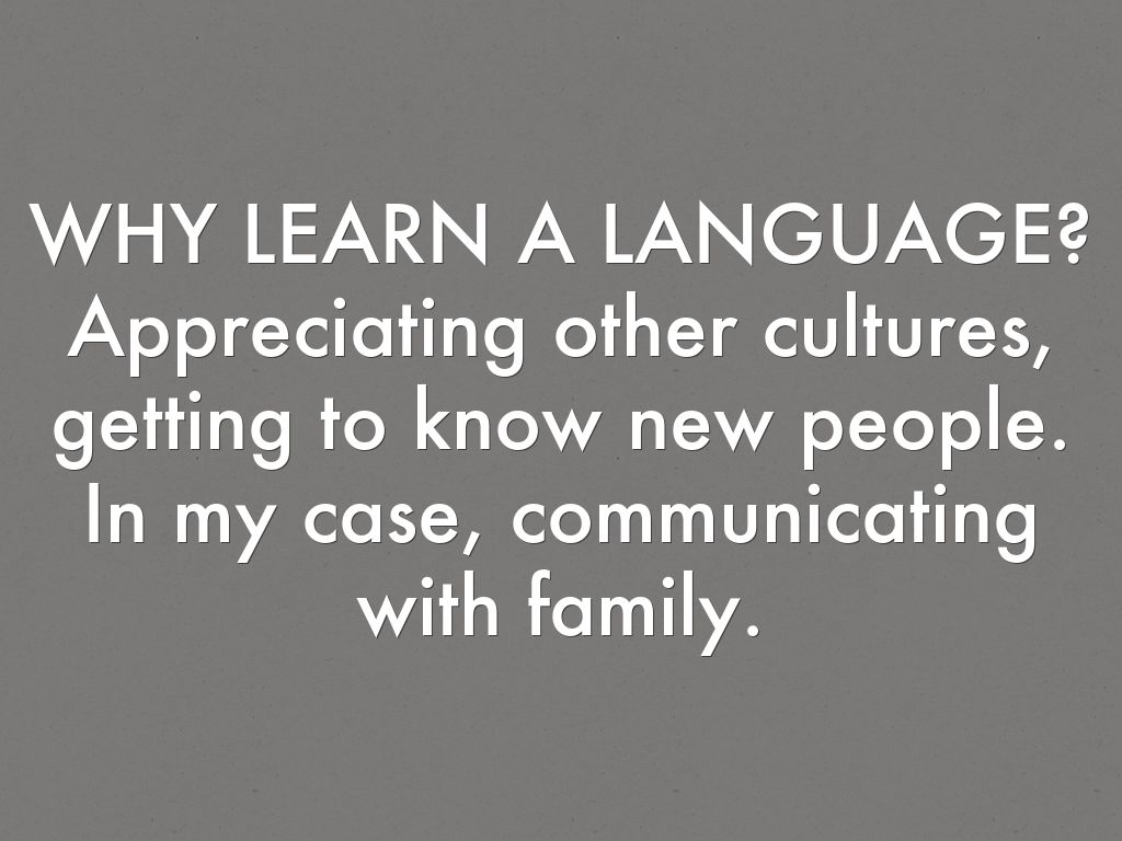 WHY LEARN A LANGUAGE? Appreciating other cultures, getting to know new people. In my case, communicating with family.