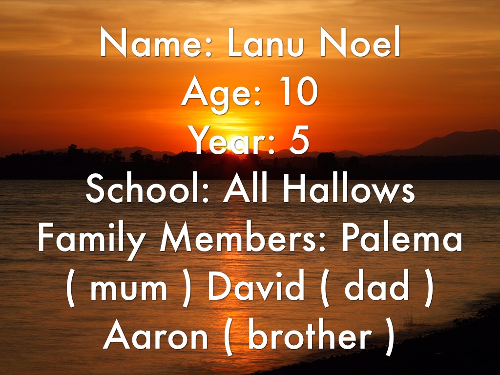 Family Members: Palema ( mum ) David ( dad ) Aaron ( brother )