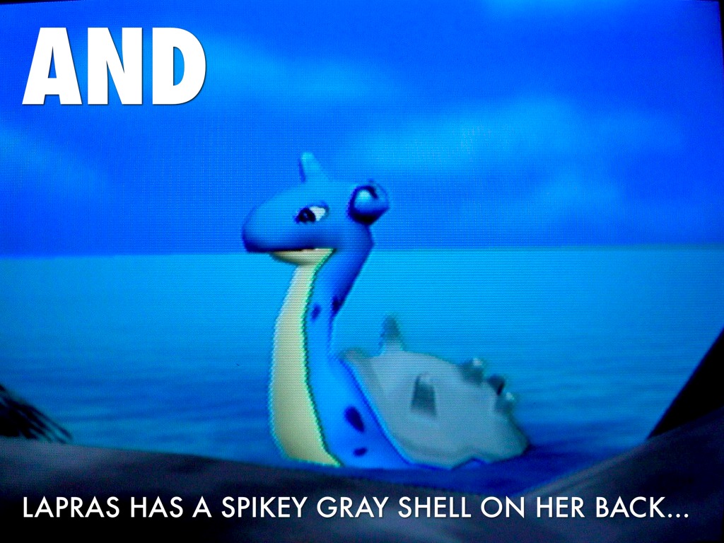 LAPRAS HAS A SPIKEY GRAY SHELL ON HER BACK...
