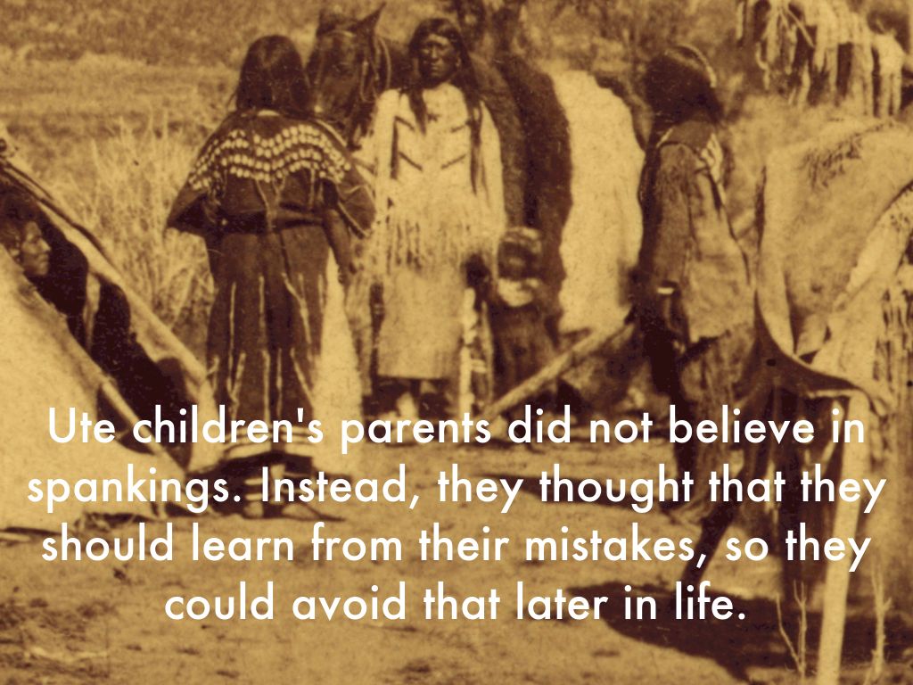 Ute children's parents did not believe in spankings. Instead, they thought that they should learn from their mistakes, so they could avoid that later in life.