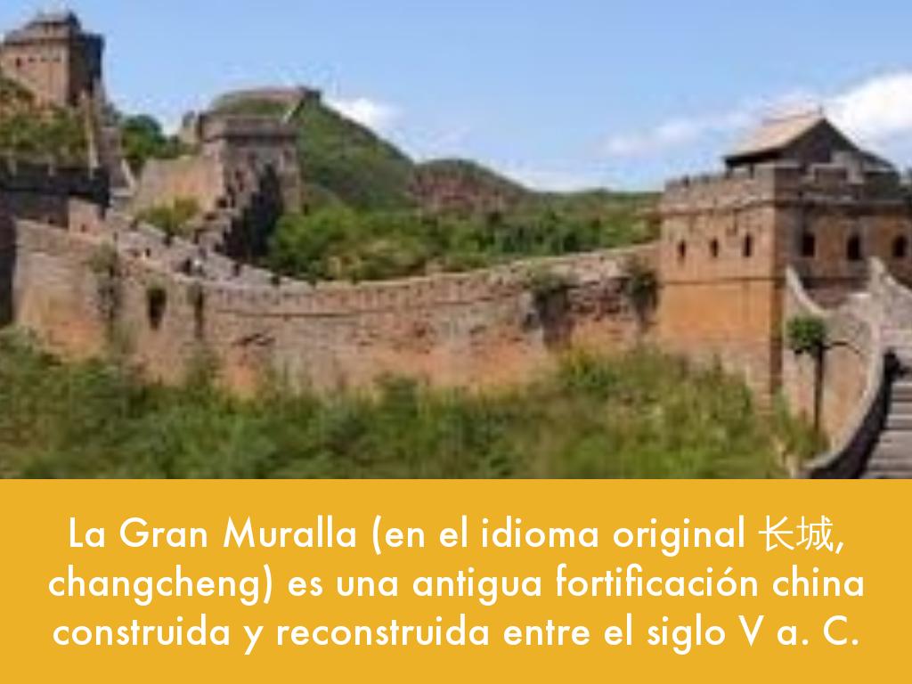 La Gran Muralla (en el idioma original 长城, changcheng) es una antigua fortificación china construida y reconstruida entre el siglo V a. C.